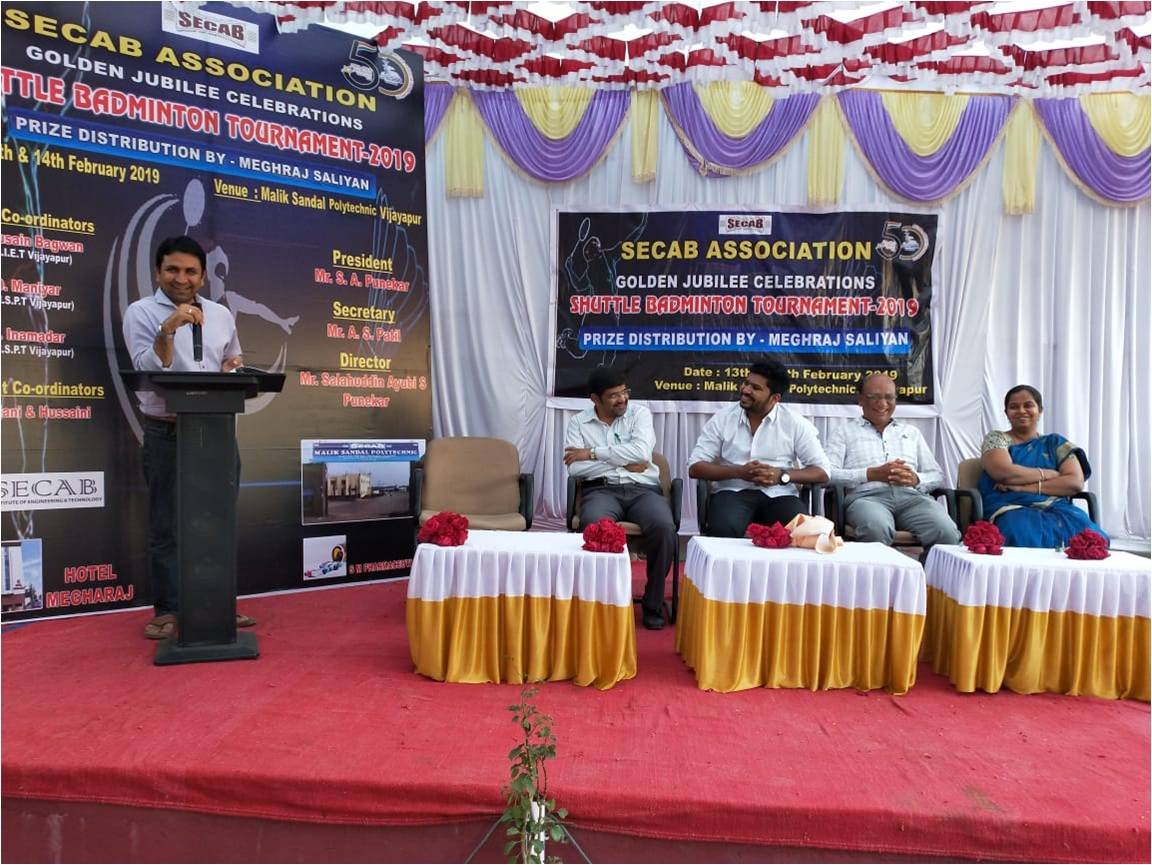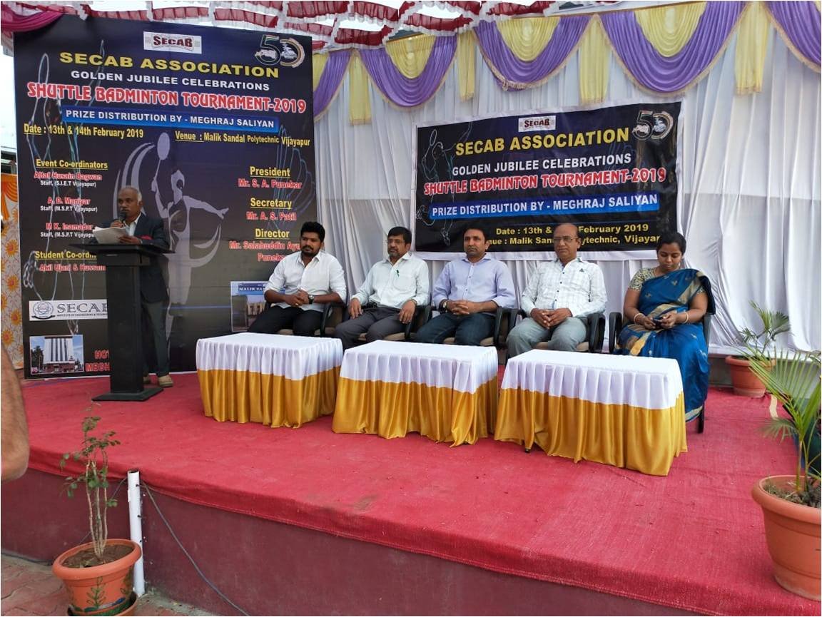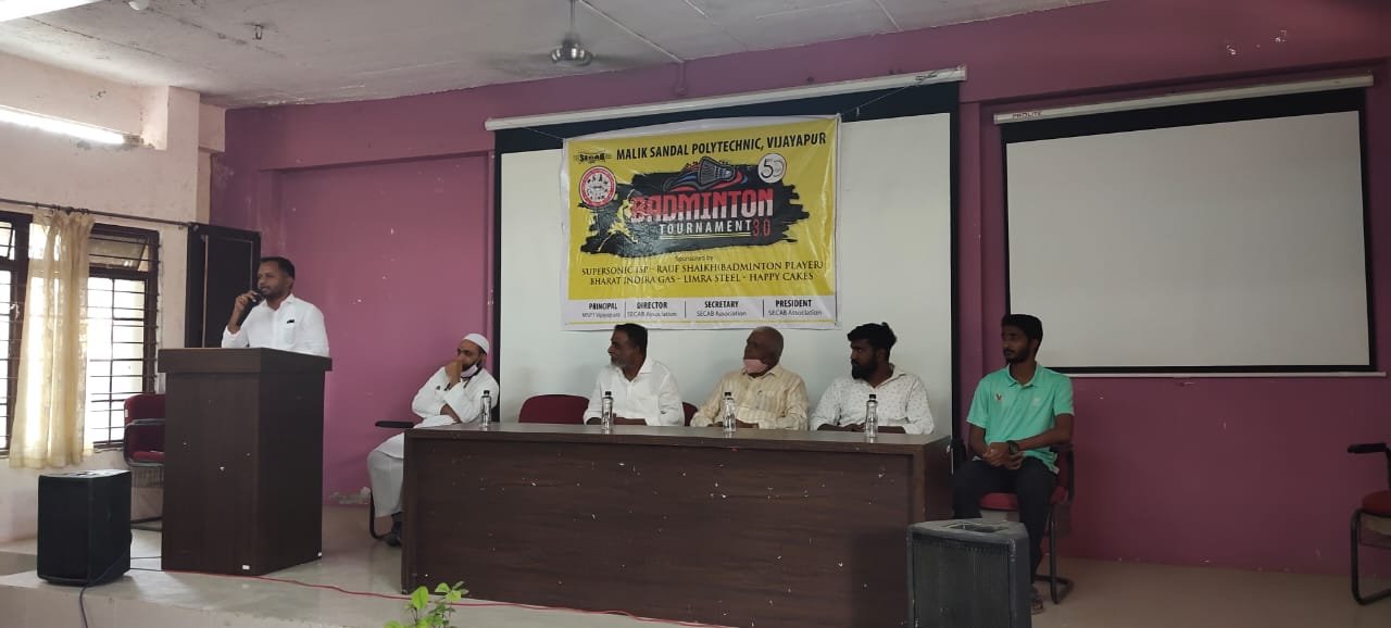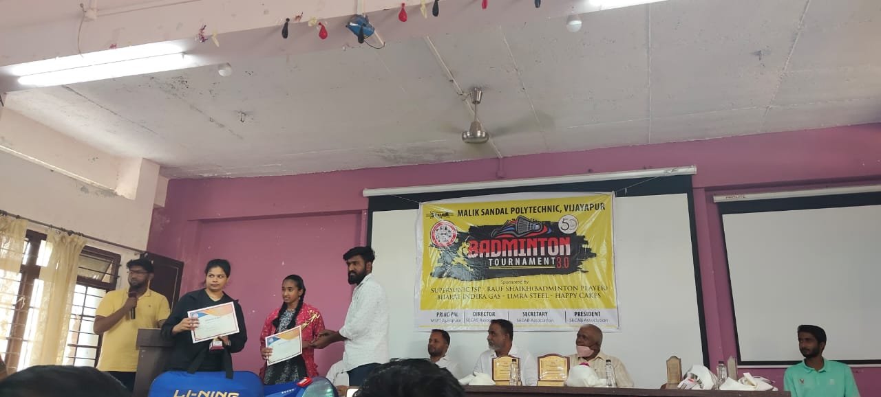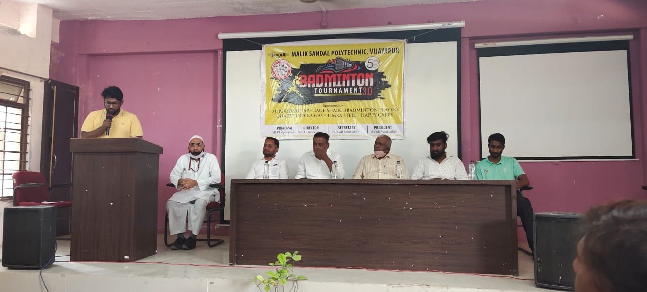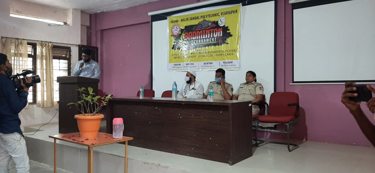 SECAB SHUTTLE BADMINTON TOURNAMENT 3.0 gets inaugurated by Jalanagar PSI, Sri. Rayagond S Janar and Smt. Prema Kuchbal, PSI APMC Station, Vijayapur. This is the 3rd year, Malik Sandal Polytechnic is hosting the event consecutively. Students from across Vijayapura and ladies in open category are participating, overwhelmingly. The Tournament will be played on 27th, 28th & 29th March 2021.