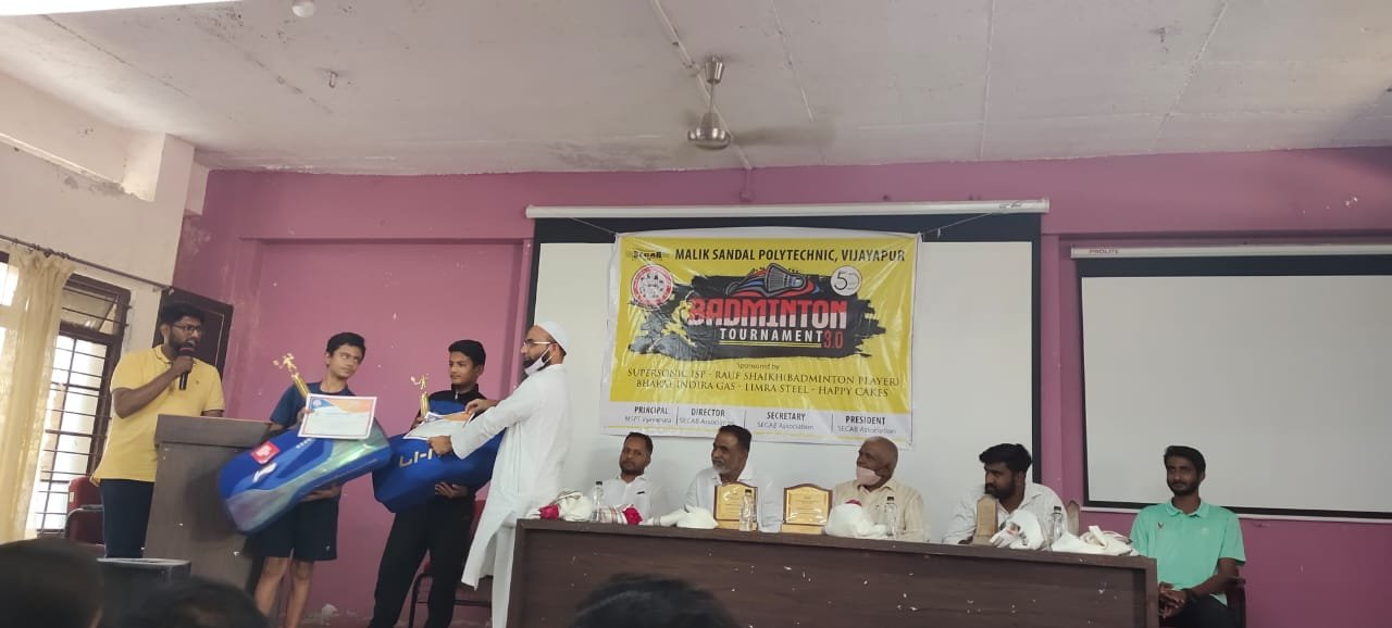 SECAB SHUTTLE BADMINTON TOURNAMENT 3.0 gets inaugurated by Jalanagar PSI, Sri. Rayagond S Janar and Smt. Prema Kuchbal, PSI APMC Station, Vijayapur. This is the 3rd year, Malik Sandal Polytechnic is hosting the event consecutively. Students from across Vijayapura and ladies in open category are participating, overwhelmingly. The Tournament will be played on 27th, 28th & 29th March 2021.